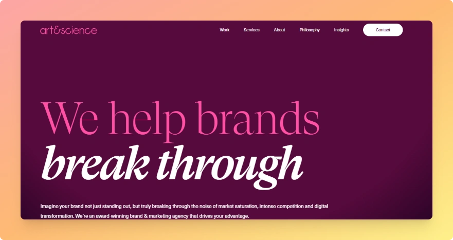 You hire Art & Science when you want a strategy-heavy partner that can connect branding, website work, paid media, SEO, and digital growth. It is a stronger fit for bigger organizations that want the website tied to a wider go-to-market engine.